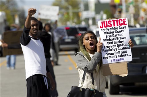 BALTIMORE (AP) — Mourners filed for hours Sunday past the coffin of the man who died after sustaining serious injuries in the custody of Baltimore police, somberly paying respects after a night of violent protests.