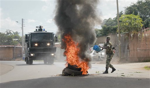 Hundreds of demonstrators erected barricades and set tires alight on Monday. The military was deployed after violent clashes on Sunday.