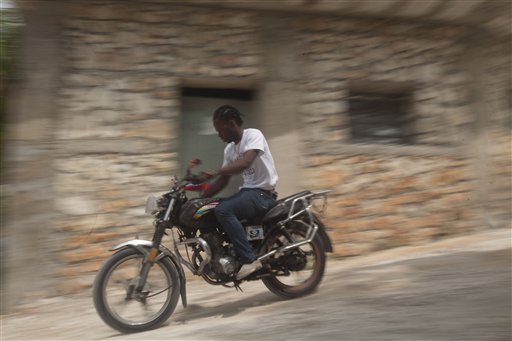 PORT-AU-PRINCE, Haiti (AP) — Joseph-Marc Carel knows the danger of ferrying passengers on his small motorbike, sometimes two at a time, as tides of the buzzing vehicles cut through the chaotic Haitian capital. He has a prosthetic leg to prove it.