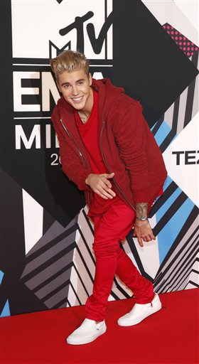 MILAN (AP) — Pop singer Justin Bieber dominated the MTV EMAs with five European music awards Sunday night, including for best male performer, best collaboration and best look.