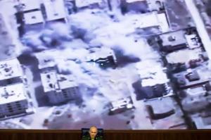 Lt. Gen. Sergei Rudskoi of the Russian military’s General Staff speaks at a briefing at the Russian Defense Ministry’s headquarters in Moscow, Russia, Thursday, Oct. 13, 2016. Rudskoi said that Russian warplanes in Syria haven’t targeted populated areas and only struck militants’s facilities near Aleppo. (AP Photo/Ivan Sekretarev)