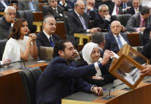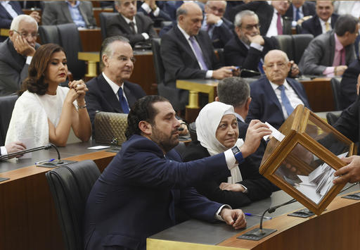 In this photo released by the Lebanese Parliament media office, former Lebanese Prime Minister and lawmaker Saad Hariri, center, casts his vote during a session to elect new president at the parliament hall, in Beirut, Lebanon, Monday, Oct. 31, 2016. Lebanon’s parliament on Monday elected Michel Aoun, an 81-year-old former army commander and strong ally of the militant group Hezbollah, as the country’s president, ending a more than two-year vacuum in the top post and a political crisis that brought state institutions perilously close to collapse. (Hassan Ibrahim, Lebanese Parliament media office, via AP)