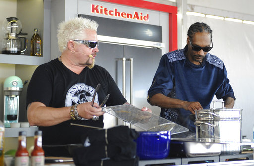 MIAMI BEACH, Fla. (AP) — Rapper Snoop Dogg furiously stirred flour into a creamy bechamel sauce, a whisk in one hand and a microphone in the other during a cooking demonstration with chef Guy Fieri.