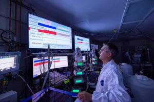 “We make gallons of this stuff a day,” said fetal physiologist Marcus Davey. It’s currently an electrolyte solution; he’s working to add other factors to make it more like real amniotic fluid.