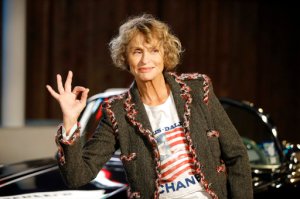 Hutton appears in the campaign wearing an open blouse and a bra. In a video , she relates a lighthearted story about quickly walking across a courtyard to avoid advances from men. She says she finally agreed to join one for a ride in his pickup truck.