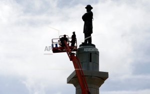 Workers backed by a crane have tied ropes around a statue of Confederate Gen. Robert E. Lee, which has perched atop a 60-foot (18 meter)-high pedestal in a traffic circle where it has been since 1884. Friday’s removal effort comes after a long and divisive battle over whether old South emblems represent racism or an honorable heritage.