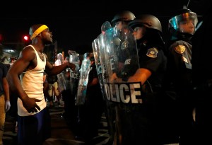 Many protesters believe police provoked demonstrators by showing up in riot gear and armored vehicles; police said they had no choice but to protect themselves once protesters started throwing things at them.