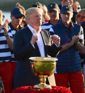 “I thought it was a great thrill,” Stricker said. “I thought it was a great opportunity for us to be with him. And this tournament is about respecting the office, respecting the president of the United States, and whether your views may be one way versus another, that wasn’t what it was about out there on the green. It was about us getting together as a team, playing for one another, playing for the USA and it was a great thrill for all of us to get the trophy handed to us from him.”