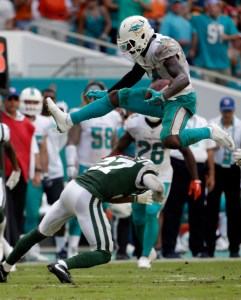OVERTURNED: Stills set up Miami’s first score with a sensational 36-yard catch, pulling in a jump ball after he fell to the turf. The pass was first ruled incomplete, but the call was reversed following a replay review.