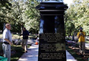 Mayor Danny Dunagan and Barbara Brooks, Gainesville’s only African-American city council member, unveiled the monument Sunday. A large crowd gathered at the cemetery for the ceremony as spirituals were sung and tributes were given.
