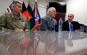 Tillerson visited Bagram Air Base for talks with Afghan President Ashraf Ghani, Chief Executive Abdullah Abdullah and other senior officials to outline for them the Trump administration’s new South Asia policy. He also underscored the ongoing U.S. commitment to stabilizing the war-ravaged country but stressed it is “conditions based,” meaning that the government must meet certain benchmarks.
