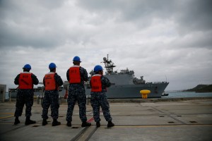 The USS Ashland rescued Jennifer Appel and Tasha Fuiava and their two dogs about 1,450 kilometers (900 miles) southeast of Japan, and brought them to America’s White Beach Naval Facility after waiting for a typhoon to pass.