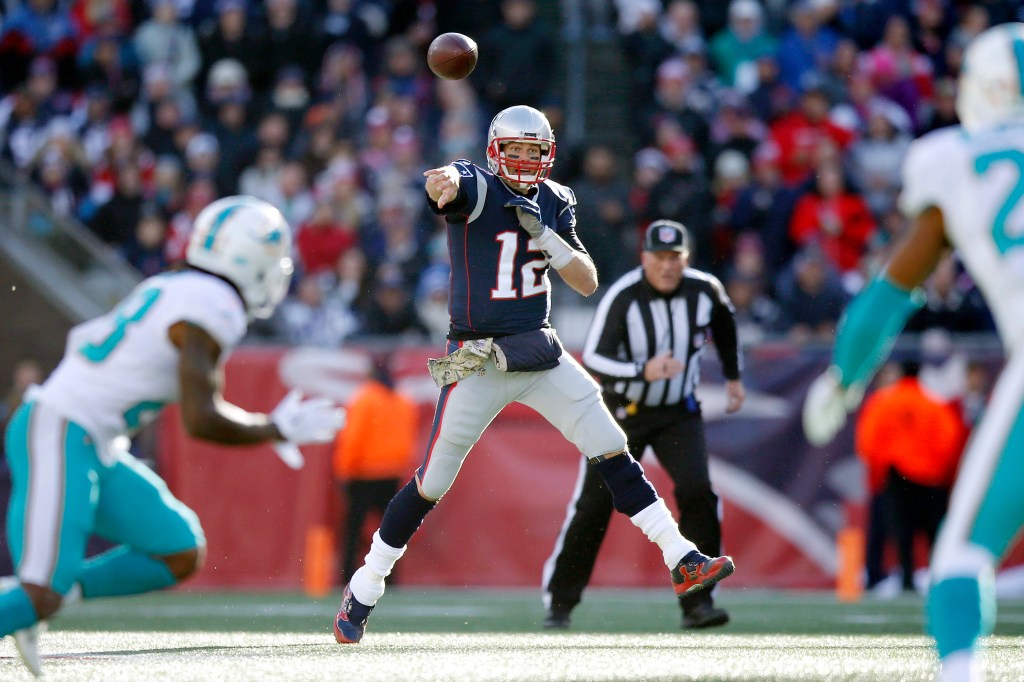 Miami got within 28-17 in the fourth quarter, but came up empty on a fourth-down pass play with 8:48 left. On the ensuing series, the Patriots pushed their lead to 35-17 on a 5-yard touchdown pass from Brady to Brandin Cooks.