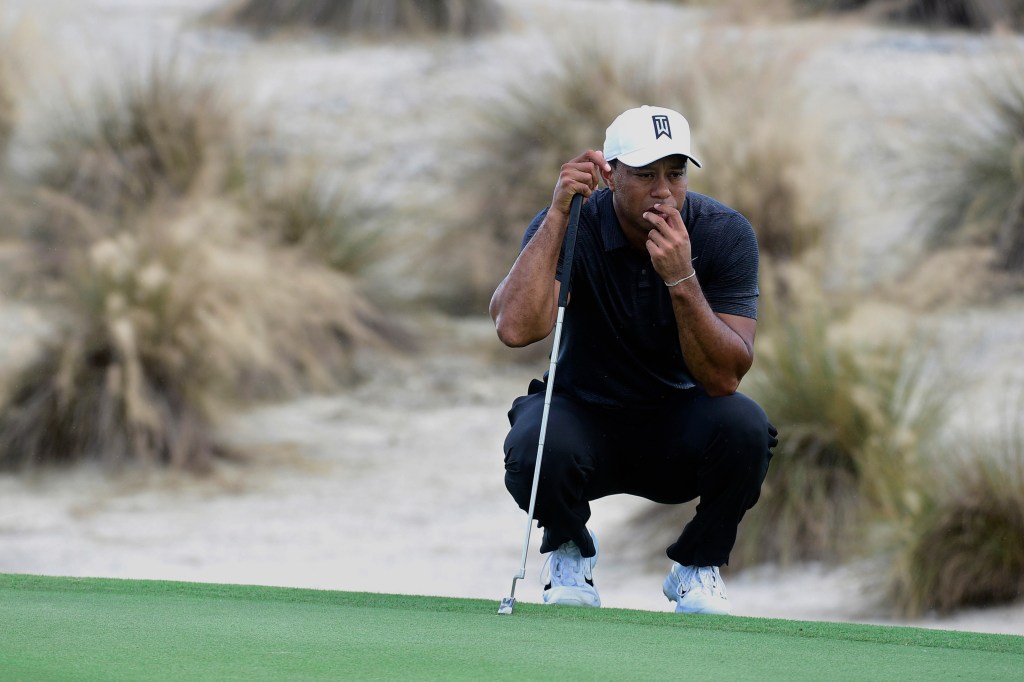 After his best shot of the day — a pitching wedge he hit low from 95 yards that settled a foot behind the hole for birdie on No. 14 — he sent a drive well to the right into the native dunes. Woods had to take a penalty drop to get back in play and wound up making bogey.