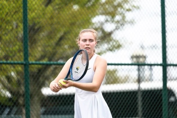 The beginning of this tennis season was her first time playing competitive tennis in over a year due to covid cancelling her senior season in Spain. She states that she was nervous and lost the match 6-1 but felt that she was back in form already. “I lost but I felt that I was building up confidence and finding my rhythm of the game.”
