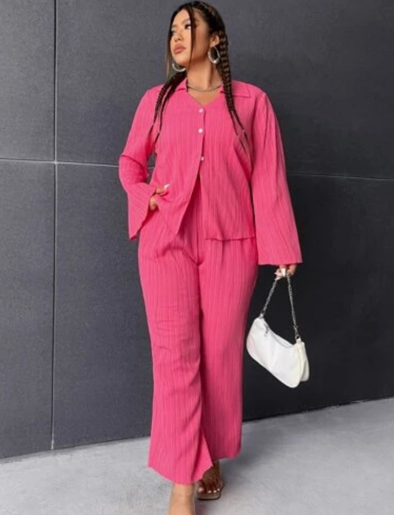 Pink is a soft and feminine color and will definitely get you in the mood for Valentine’s Day. A look like this pretty in pink pants set will have all eyes on you. This outfit is great for outdoor dates with breathable fabric and a comfortable, chic look. You can pair this with sneakers and a top underneath for a sportier look, or a pair of mule heels and matching accessories for a flirty look.