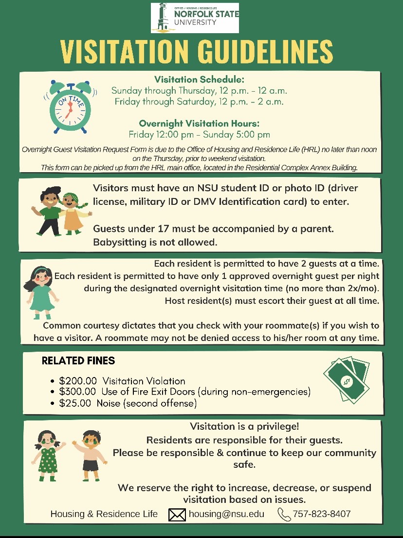 As of April 4th, 2024, NSU decided to rekindle its past and bring back the privilege of outside and overnight visitation. This means that students are now allowed to have overnight visitation on weekends and can also have visitors who do not attend NSU. Originally students could not have overnight visitors due to curfew enforcements made by Housing and Residence Life. During the week students could only have fellow students visit their rooms from 12 p.m. to 12 a.m. and on weekends, 12 p.m to 2 a.m. Additionally, students were only allowed visitors who attend NSU.