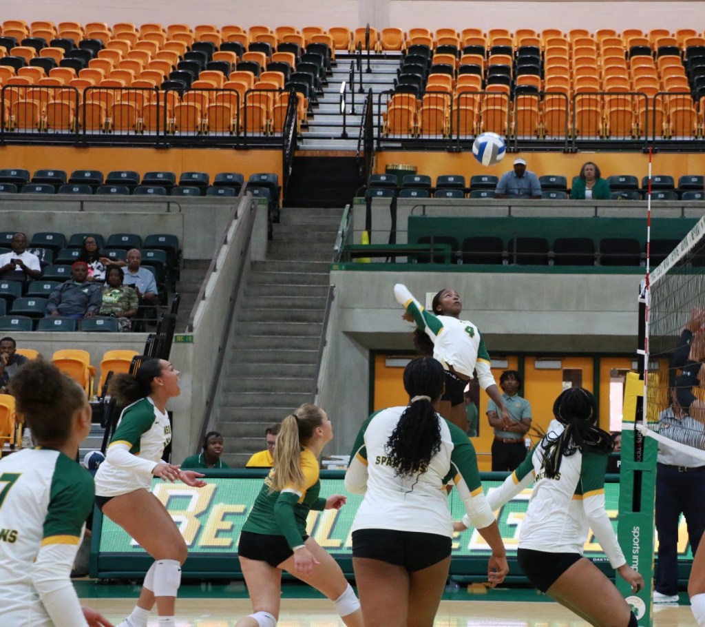 The Spartan’s second opponent of the day were the Lamar University Cardinals. The first set started with the teams taking turns tying and switching leads, until the Spartans went on a 5-0 scoring run that included blocks, setter kills, and service aces.